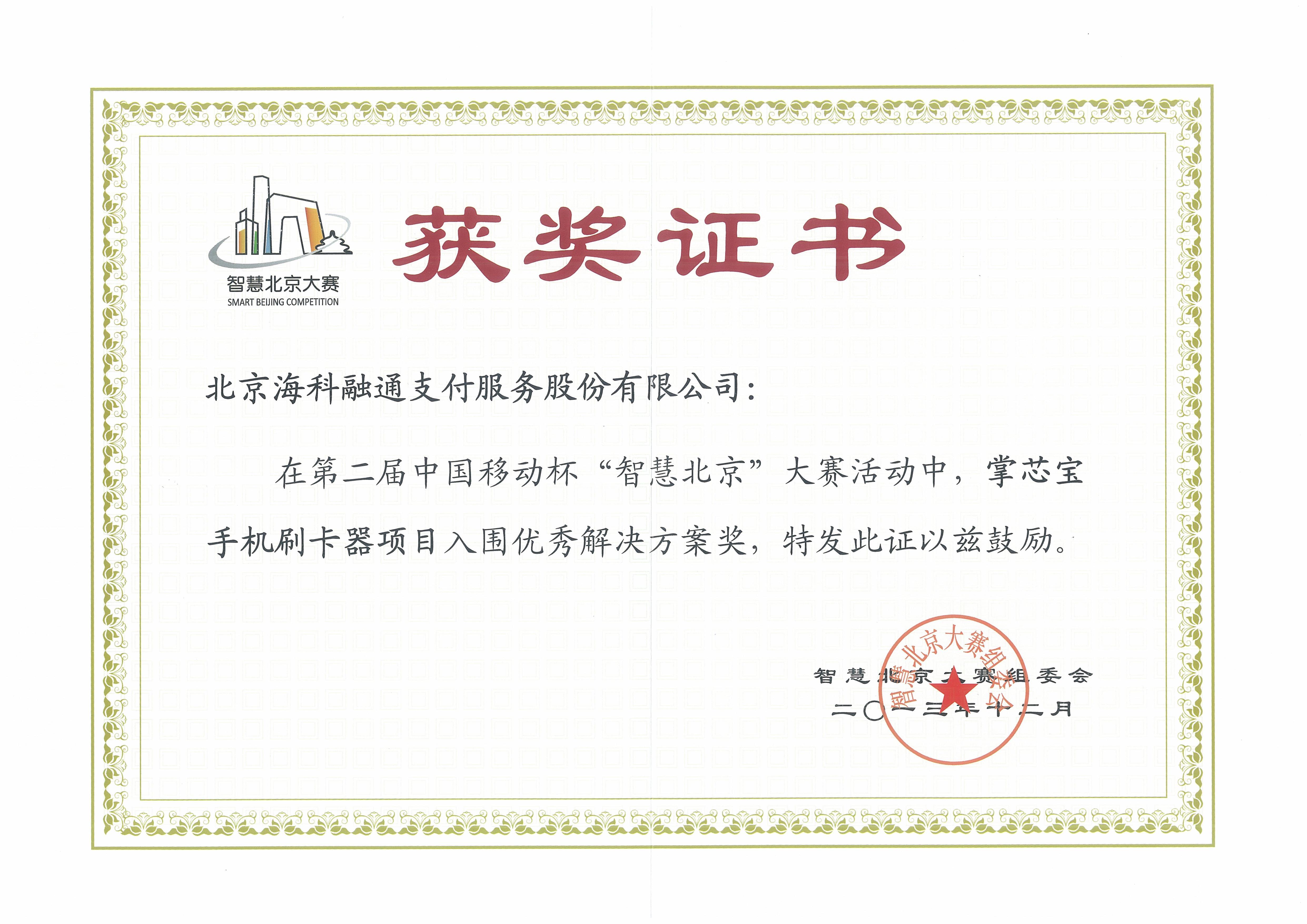 榮獲中國支付清算協會頒發的支付清算綜合服務平臺建設優秀單位